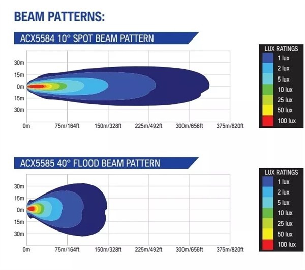 Each light will feature a colour coded back-plate so that you can easily identify the beam pattern of each light.